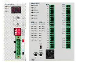 2.2 方案制定 控制器采用DVP28SV11T。28SV提供左側并列式高速擴展。由于方案需要通過CANopen通訊,所以選用此款PLC并擴展DVPCOPM-SL,如圖3所示。  圖3 左側為DVPCOPM-SL,右側為DVP28SV11T 牽引部分要求走精確定位,這樣每個顏色才能印到恰當的位置,不至于跑色。選用ASD-A5523-B伺服。因為導帶比較長,負載比較大,所以5.5kW伺服配20比1的減速機。如圖4所示。