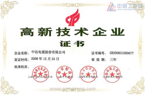 按照《高新技術企業認定管理辦法》(國科發火〔2008〕172號)和《高新技術企業認定管理工作指引》(國科發火〔2008〕362號)有關規定,經過上級有關部門的嚴格審核,中達電通日前順利通過國家科技創新類的最高認證之一——被認定為國家級高新技術企業!